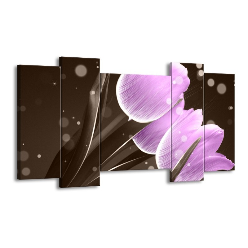 Glas schilderij Tulp | Paars, Grijs | 120x65cm 5Luik
