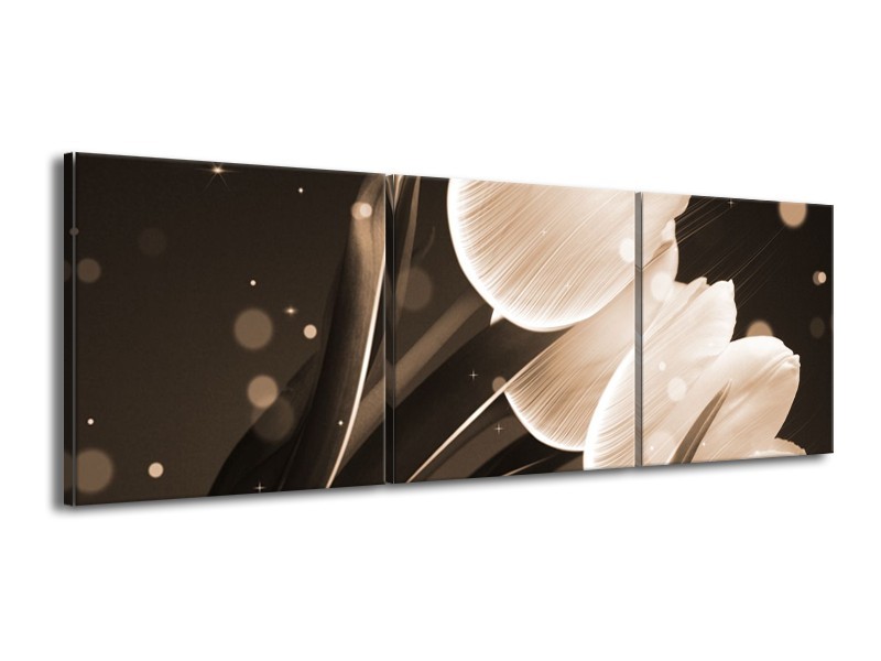 Canvas schilderij Tulp | Wit, Grijs | 150x50cm 3Luik