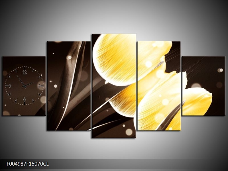 Klok schilderij Tulp | Geel, Bruin | 150x70cm 5Luik