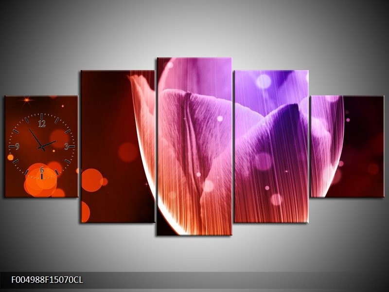 Klok schilderij Tulp | Paars, Rood | 150x70cm 5Luik