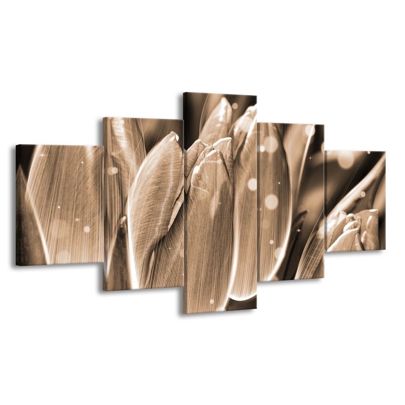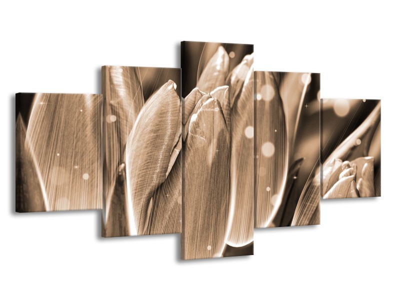 Canvas schilderij Tulp | Grijs, Zwart | 150x80cm 5Luik