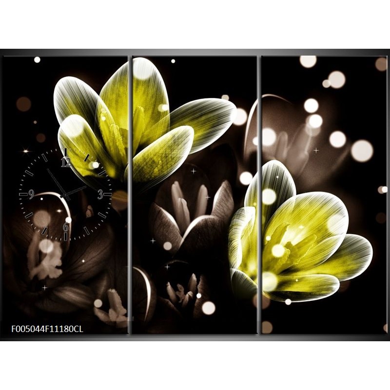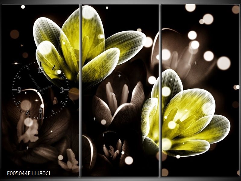 Klok schilderij Bloem | Geel, Grijs | 111x80cm 3Luik