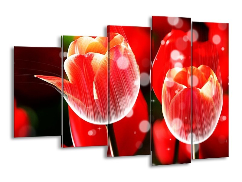 Canvas schilderij Tulp | Rood, Wit | 150x100cm 5Luik