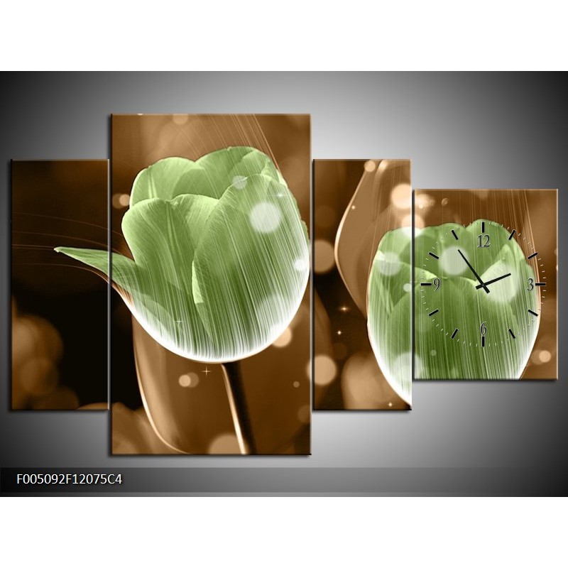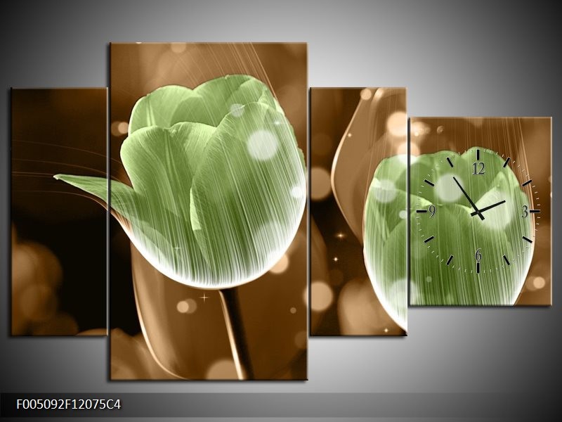 Klok schilderij Tulp | Groen, Bruin | 120x75cm 4Luik