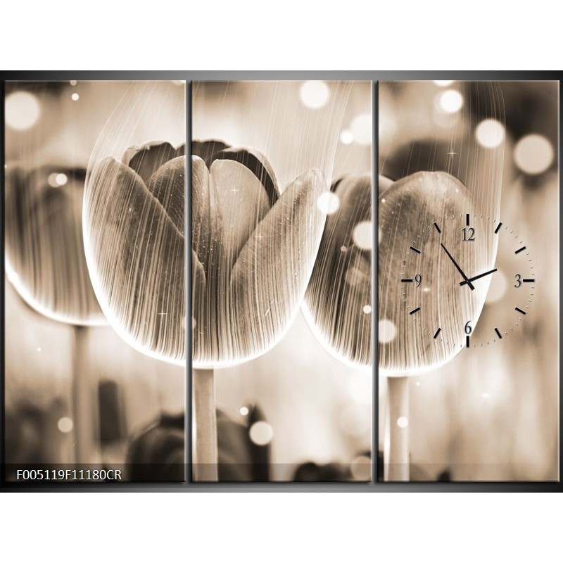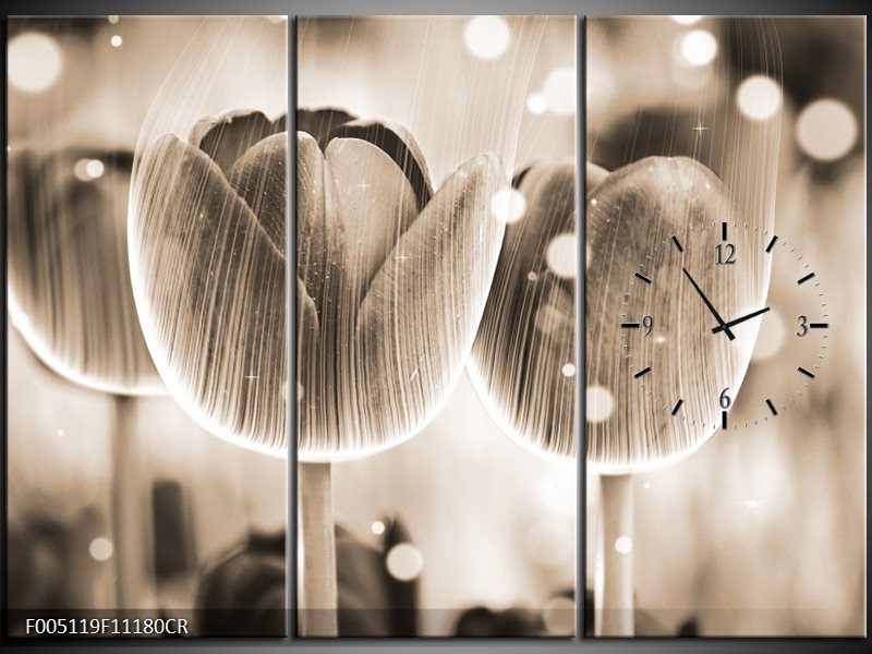 Klok schilderij Tulp | Grijs | 111x80cm 3Luik