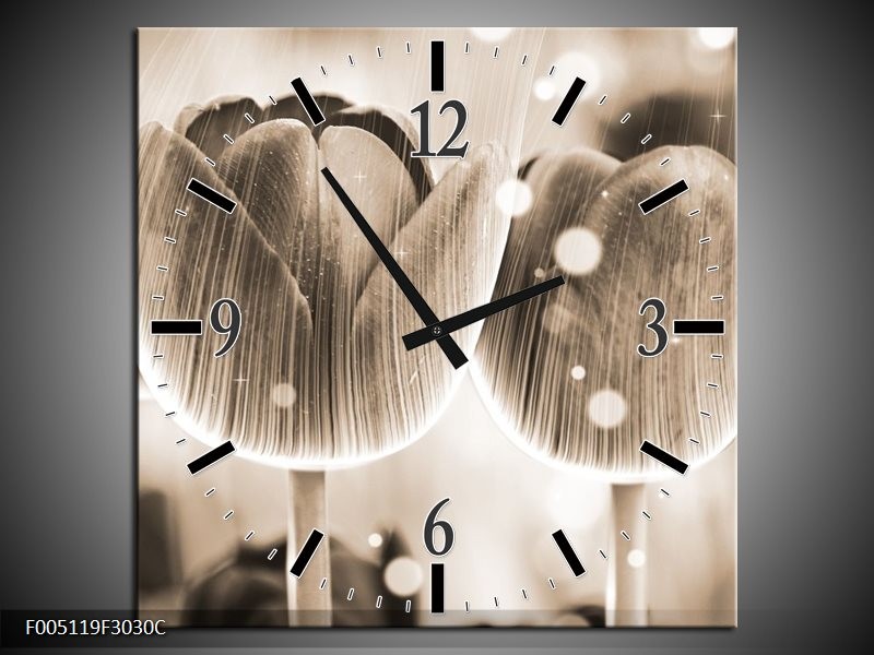 Klok schilderij Tulp | Grijs | 30x30cm 1Luik