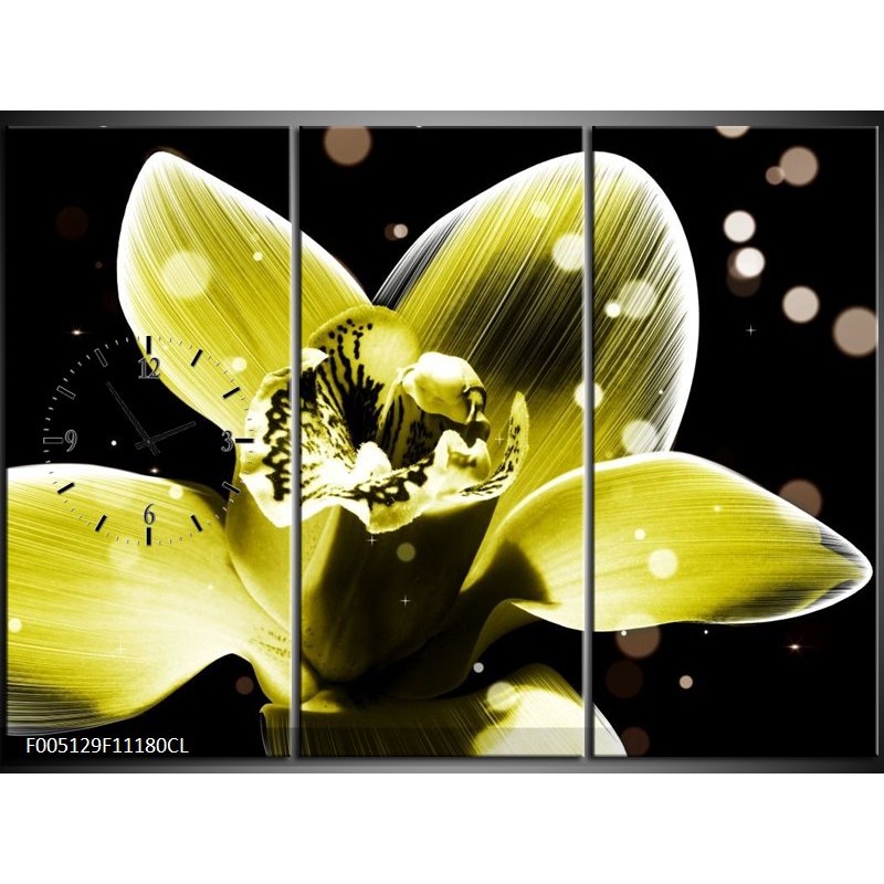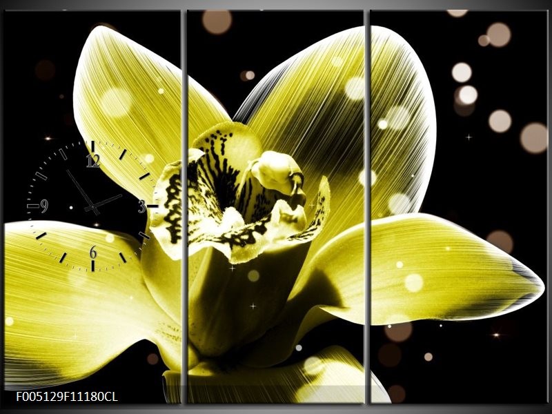 Klok schilderij Iris | Geel, Zwart | 111x80cm 3Luik