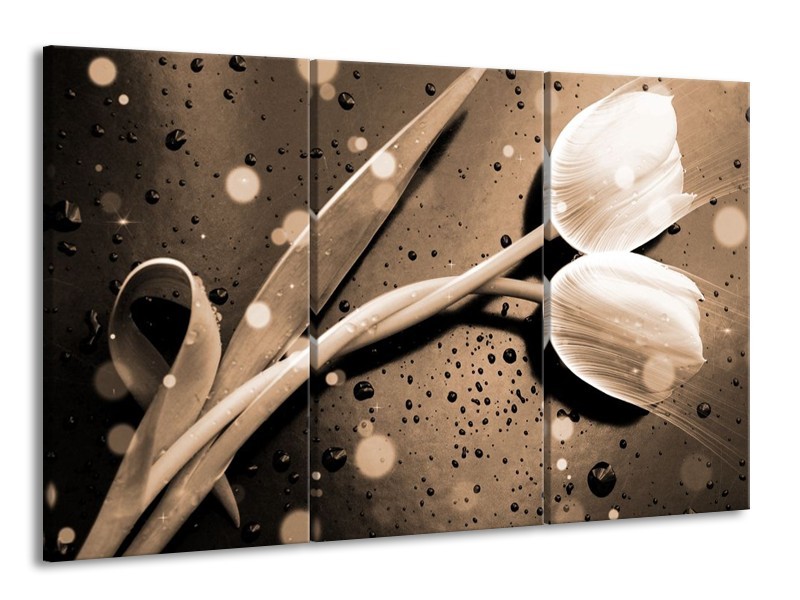 Canvas schilderij Tulp | Grijs, Wit | 165x100cm 3Luik