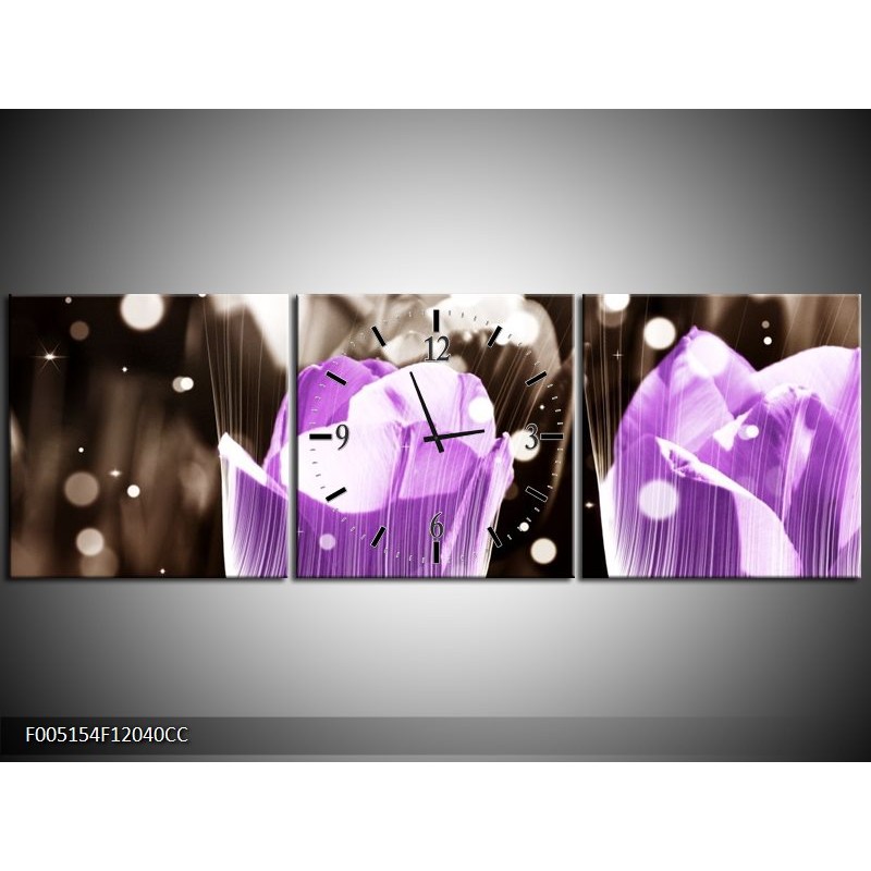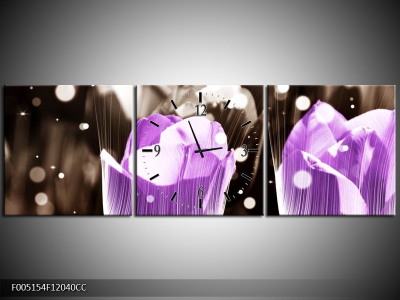 Klok schilderij Tulp | Paars, Grijs | 120x40cm 3Luik