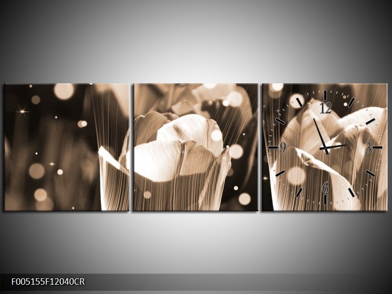 Klok schilderij Tulp | Grijs | 120x40cm 3Luik