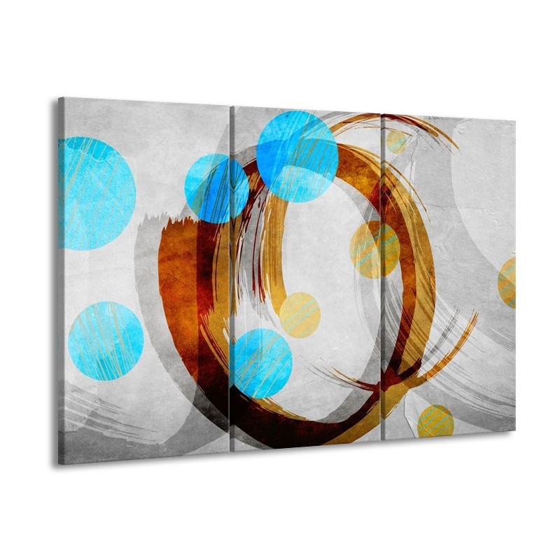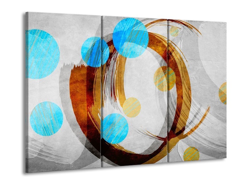Canvas schilderij Art | Blauw, Bruin, Grijs | 90x60cm 3Luik