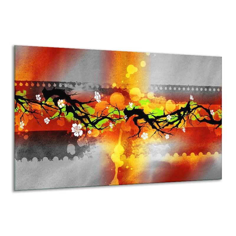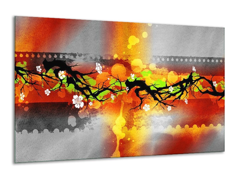 Glas schilderij Art | Oranje, Zwart, Geel | 120x70cm 1Luik
