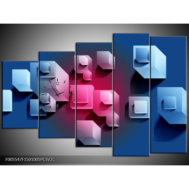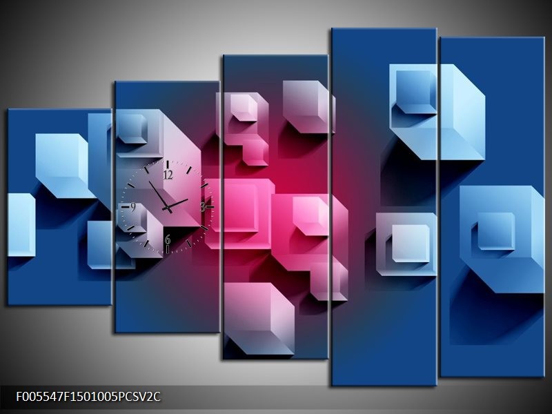 Klok schilderij Vierkant | Blauw, Roze, Wit | 150x100cm 5Luik
