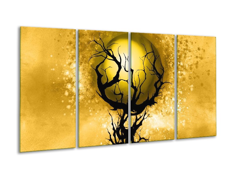 Canvas schilderij Boom | Zwart, Goud, Wit | 160x80cm 4Luik