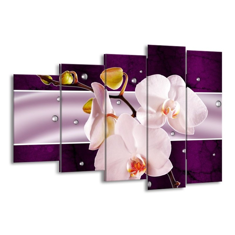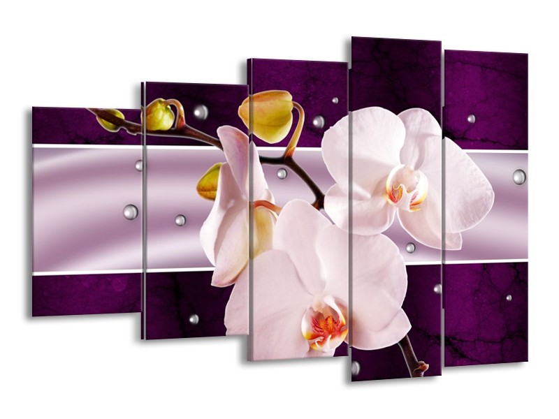 Glas schilderij Orchidee | Paars, Wit, Grijs | 150x100cm 5Luik
