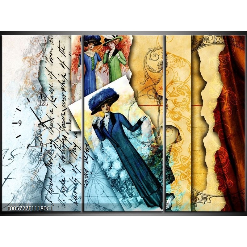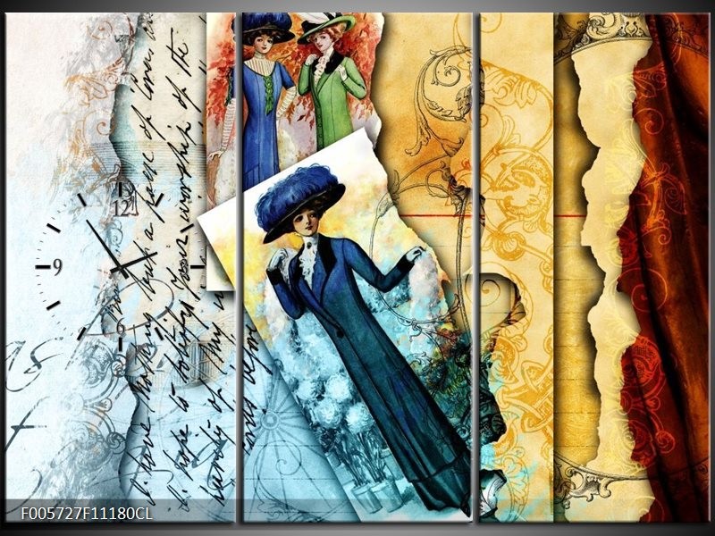 Klok schilderij Vrouw | Blauw, Crème | 111x80cm 3Luik