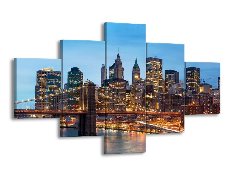 Canvas schilderij Brug | Blauw, | 125x70cm 5Luik
