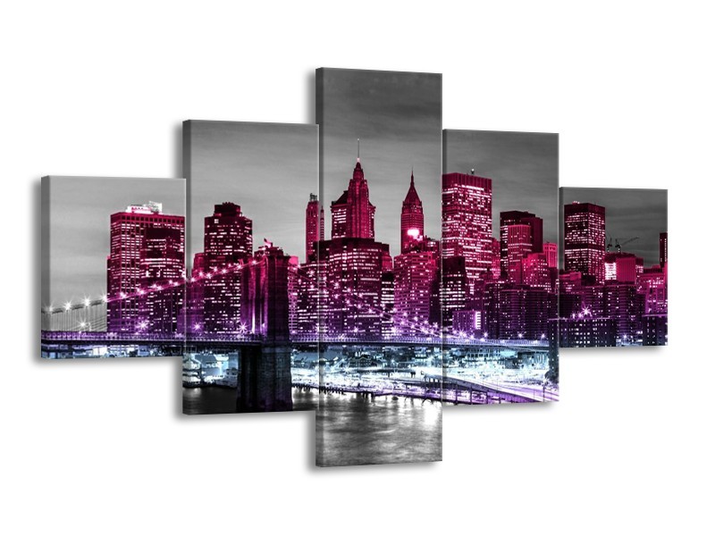 Canvas schilderij New York | Paars, Zwart | 125x70cm 5Luik