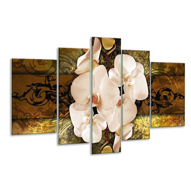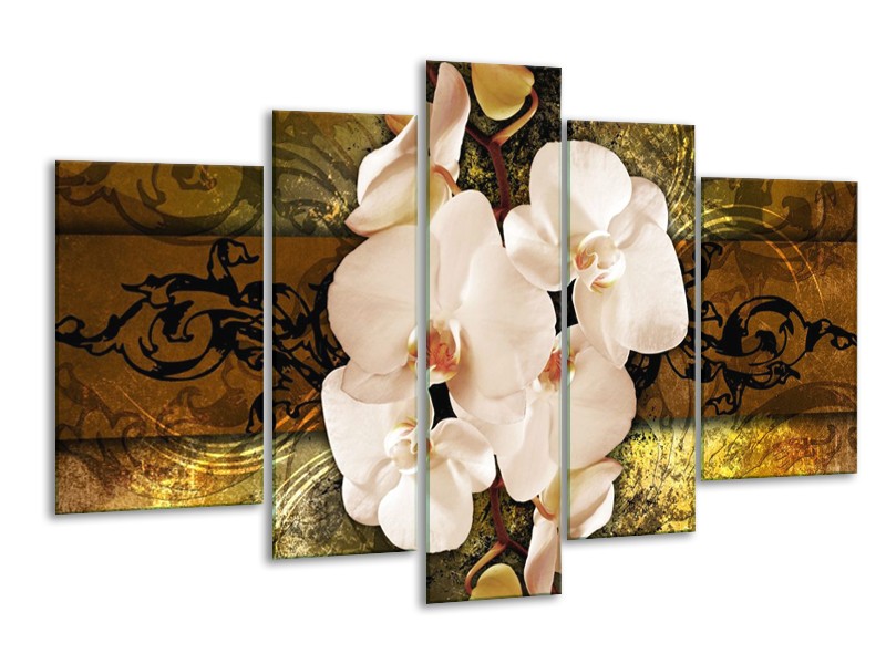 Canvas schilderij Orchidee | Bruin, Goud, Crème | 170x100cm 5Luik