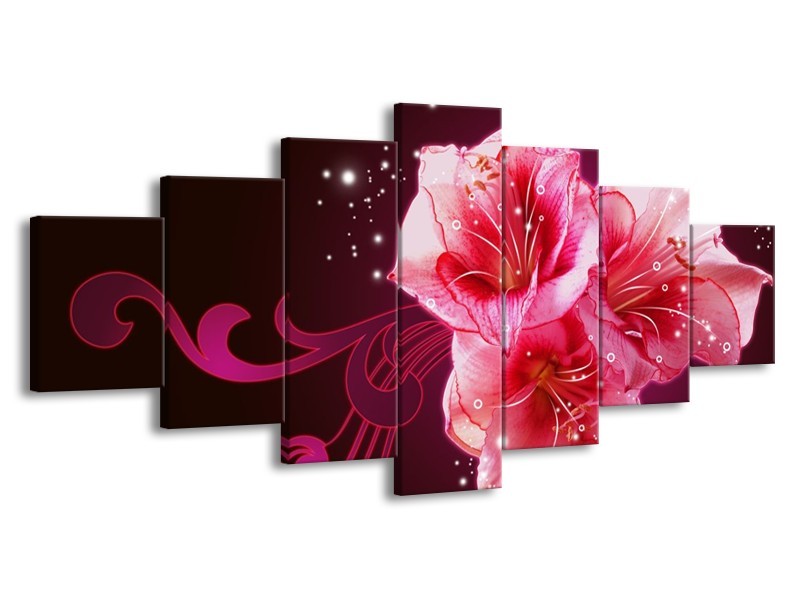Canvas schilderij Lelie | Roze, Paars, Zwart | 210x100cm 7Luik