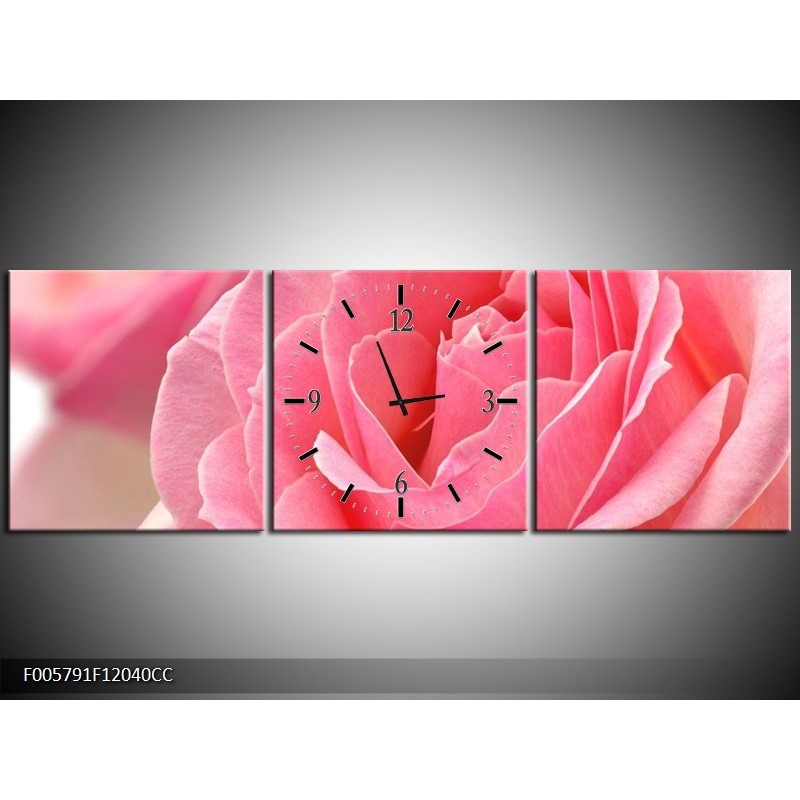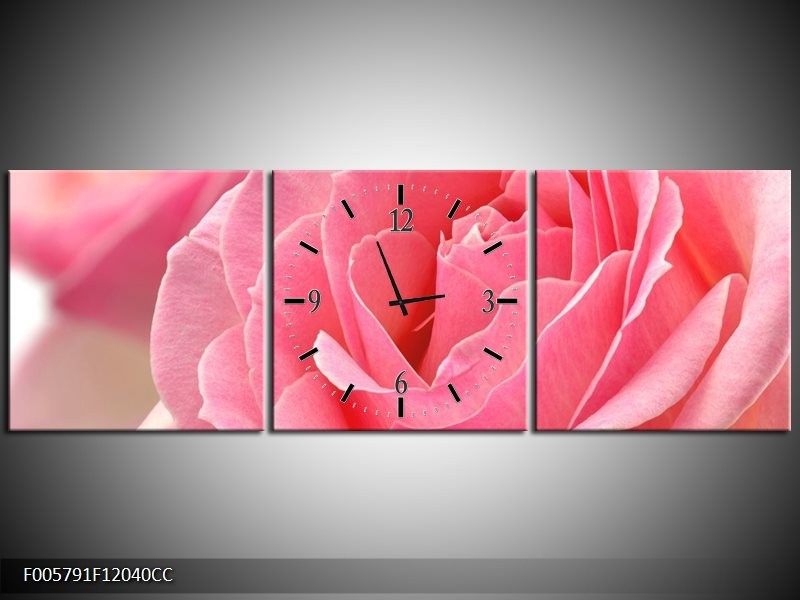 Klok schilderij Roos | Roze | 120x40cm 3Luik