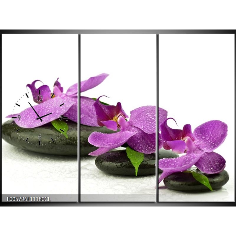 Klok schilderij Orchidee | Paars, Wit | 111x80cm 3Luik