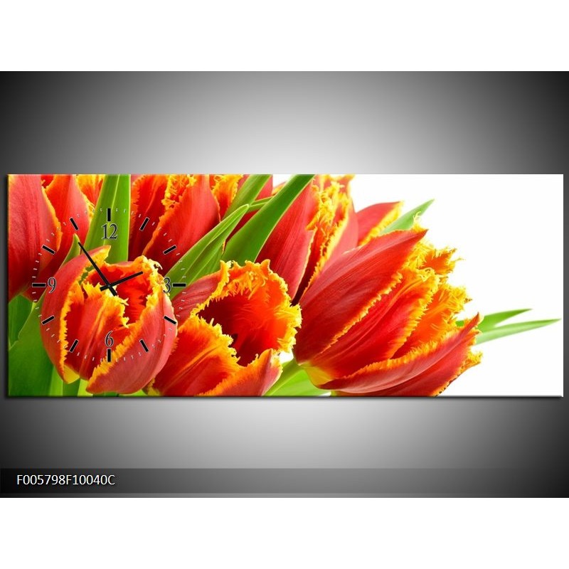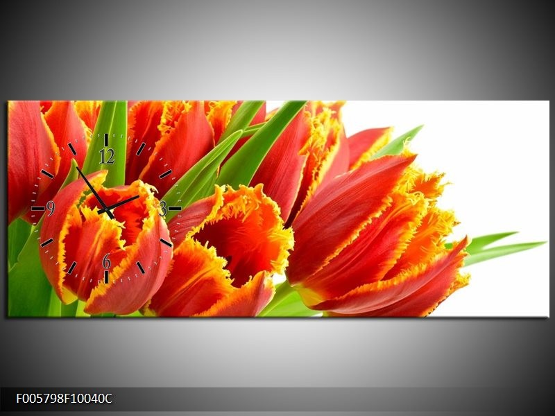 Klok schilderij Tulpen | Oranje, Groen, Wit | 100x40cm 1Luik