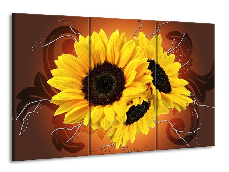 Canvas schilderij Zonnebloem | Geel, Bruin | 165x100cm 3Luik