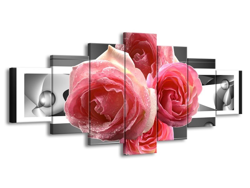 Canvas schilderij Roos | Roze, Grijs | 210x100cm 7Luik