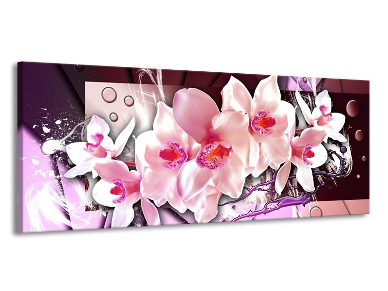 Canvas schilderij Orchidee | Paars, Roze, Wit | 145x58cm 1Luik