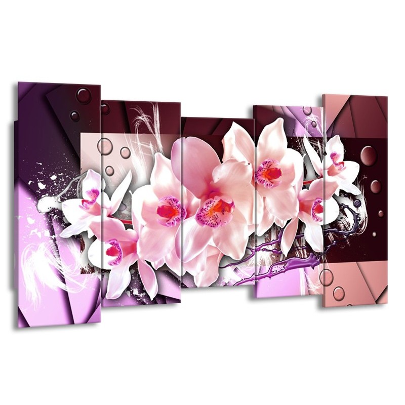 Canvas schilderij Orchidee | Paars, Roze, Wit | 150x80cm 5Luik