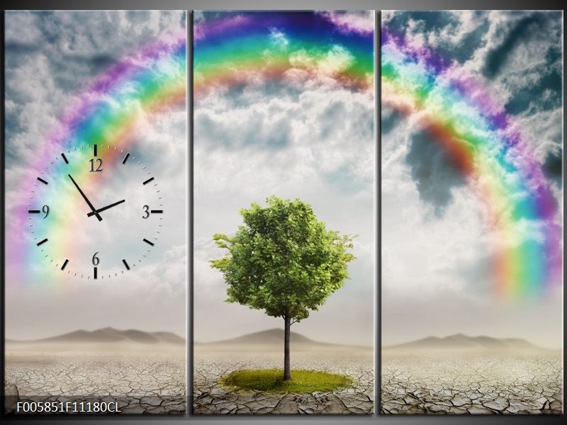 Klok schilderij Boom | Groen, Grijs, Paars | 111x80cm 3Luik