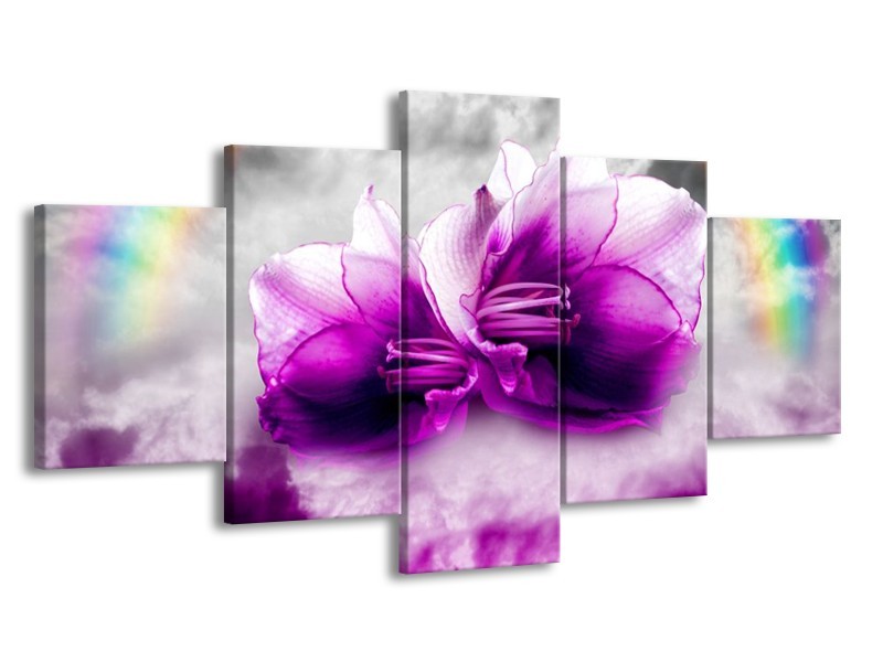 Canvas schilderij Lelie | Paars, Grijs | 150x80cm 5Luik