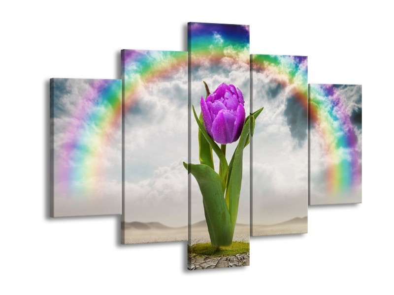 Glas schilderij Tulp | Paars, Grijs, Groen | 150x105cm 5Luik