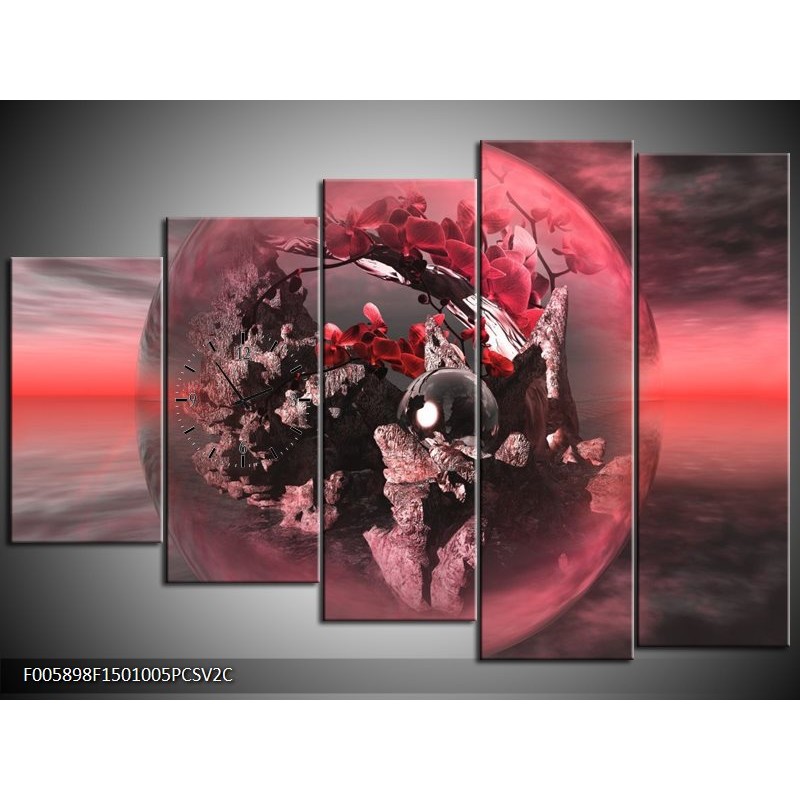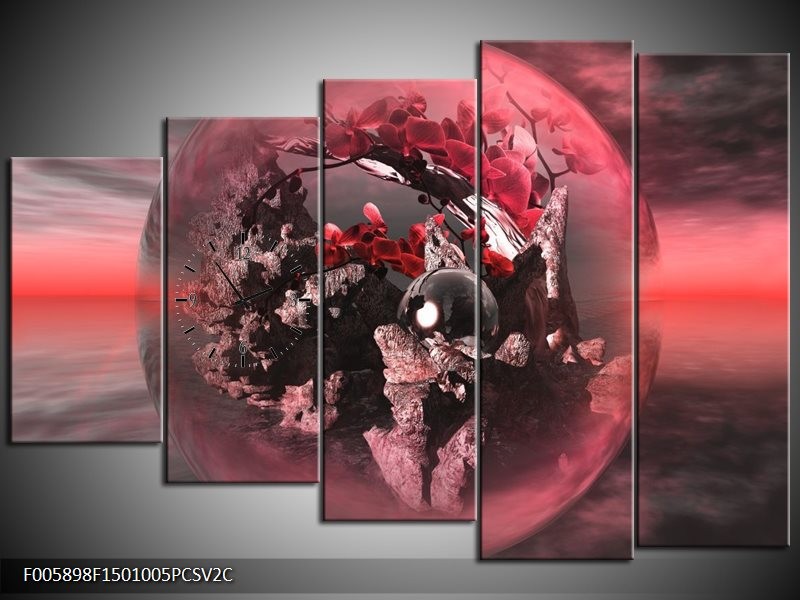 Klok schilderij Orchidee | Rood, Grijs | 150x100cm 5Luik