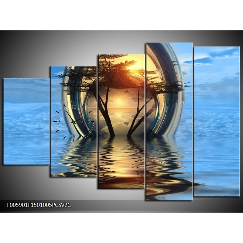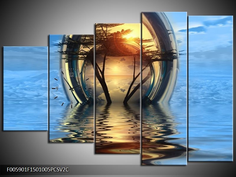 Klok schilderij Boom | Blauw, Geel | 150x100cm 5Luik