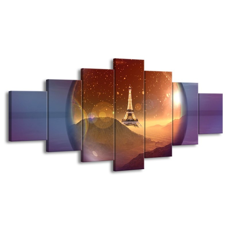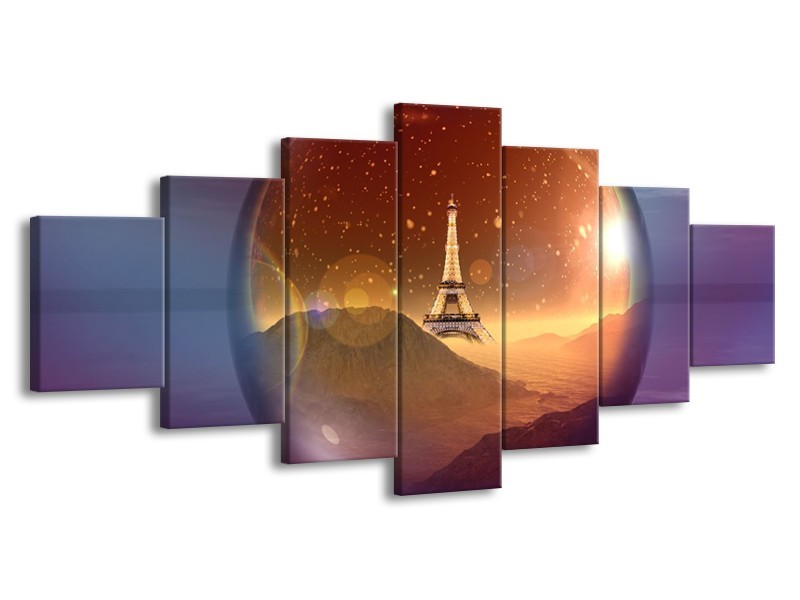 Canvas schilderij Eiffeltoren | Paars, Goud, Bruin | 210x100cm 7Luik