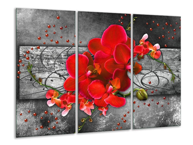 Glas schilderij Orchidee | Rood, Grijs | 120x80cm 3Luik