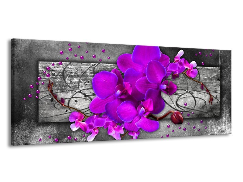 Canvas schilderij Orchidee | Paars, Grijs | 145x58cm 1Luik