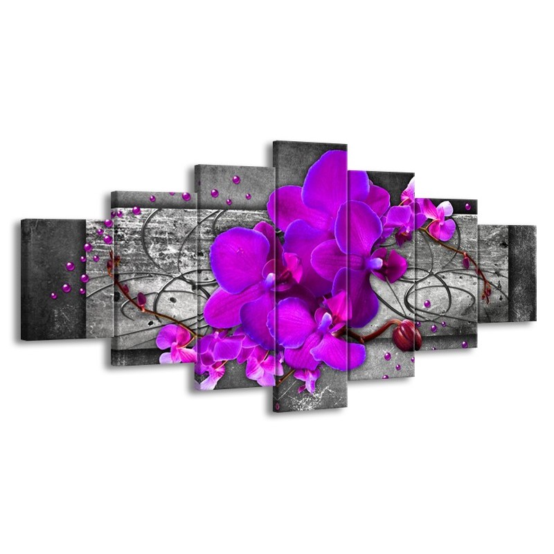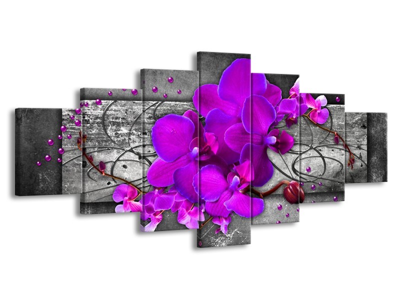 Canvas schilderij Orchidee | Paars, Grijs | 210x100cm 7Luik