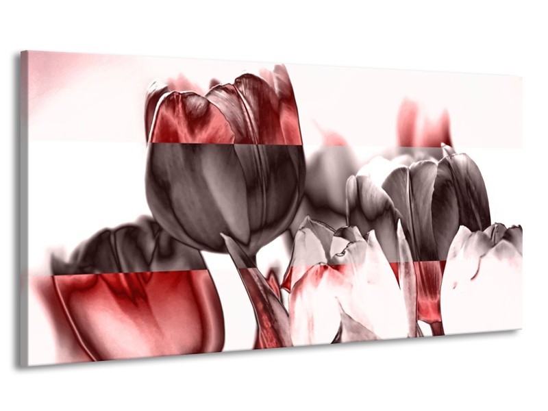 Canvas schilderij Tulp | Rood, Wit, Bruin | 170x90cm 1Luik