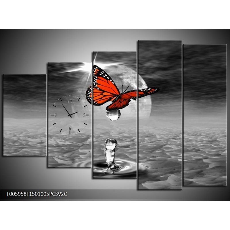Klok schilderij Vlinder | Rood, Grijs, Wit | 150x100cm 5Luik