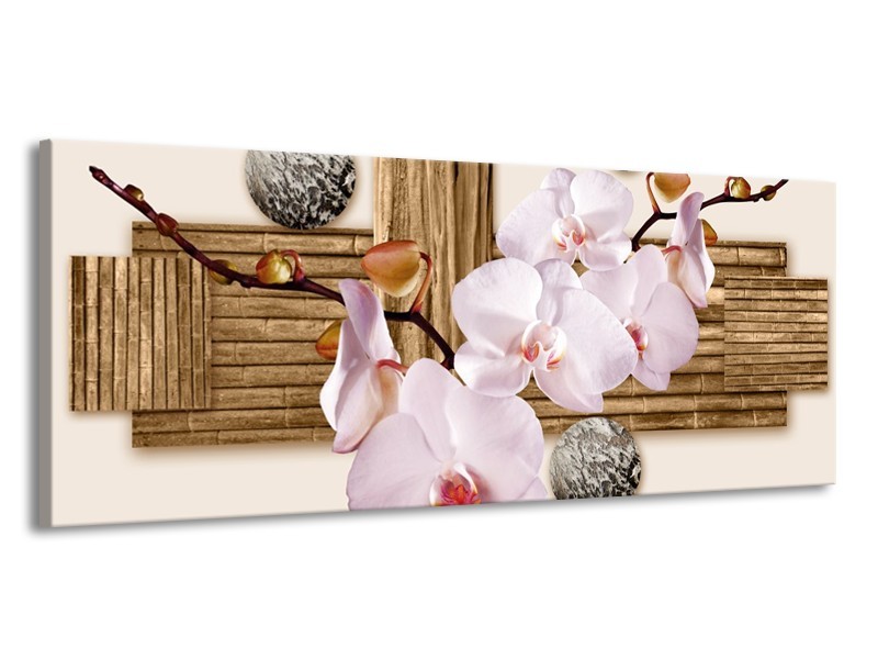 Canvas schilderij Orchidee | Roze, Grijs, Bruin | 145x58cm 1Luik
