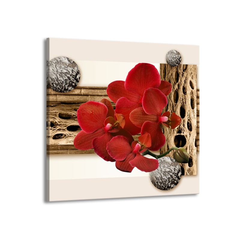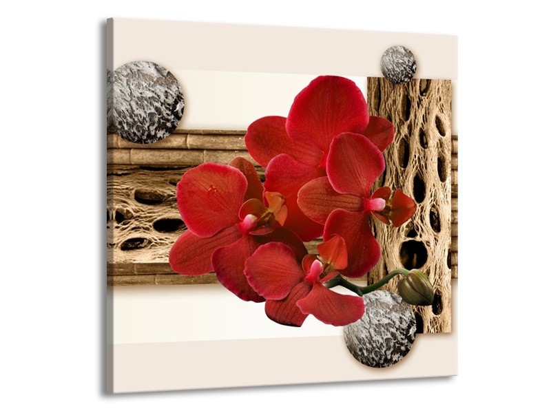 Canvas schilderij Orchidee | Rood, Bruin, Wit | 70x70cm 1Luik