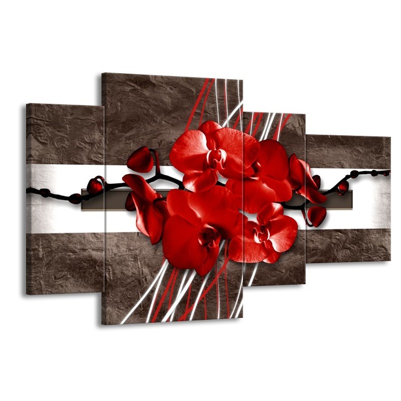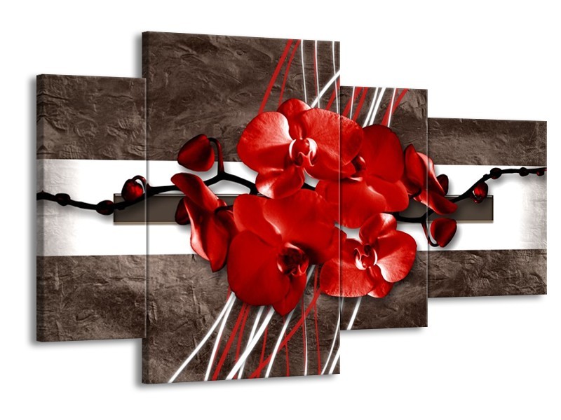 Glas schilderij Orchidee | Rood, Bruin, Wit | 120x75cm 4Luik