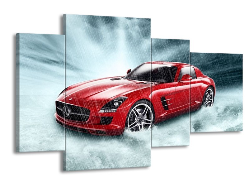 Canvas schilderij Mercedes | Wit, Rood, Zwart | 120x75cm 4Luik