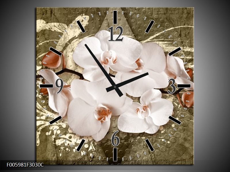 Klok schilderij Orchidee | Goud, Wit, Bruin | 30x30cm 1Luik