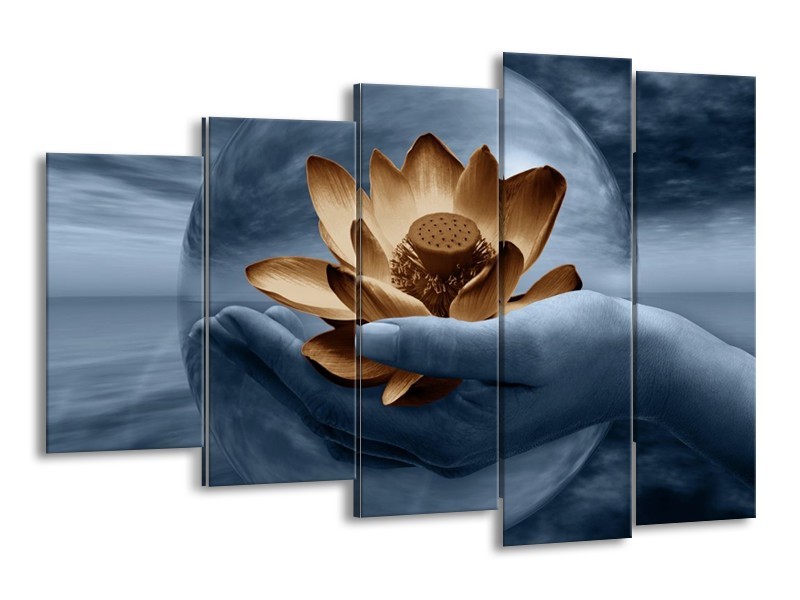 Glas schilderij Bloem | Grijs, Blauw, Bruin | 150x100cm 5Luik