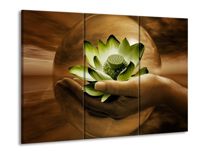 Canvas schilderij Bloem | Groen, Bruin | 90x60cm 3Luik