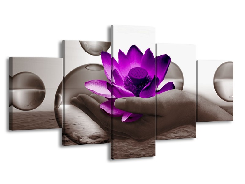 Canvas schilderij Bloem | Paars, Grijs | 150x80cm 5Luik